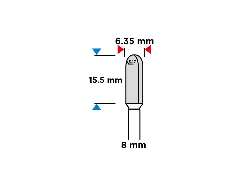 Fréza na dlhé drážky v tvare U, vložka z tvrdokovu (HM), pracovný priemer frézy 6,35 mm, pracovná dĺžka 15.5 mm, priemer stopky 8 mm, na masívne drevo, MDF, drevotrieskové dosky, preglejky