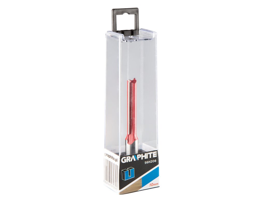 Dlhá obojstranná fréza, HM, 10 x 50 mm, stopka 12 mm GRAPHITE (ref. 56H208) je určená na presné obrábanie napr. dreva, PVC, drevotriesky pomocou frézy. Hlava je vybavená reznými doštičkami zo spekaného karbidu, ktoré umožňujú dosiahnuť dokonalú kvalitu povrchu. Rozmery pracovnej časti: priemer 10 mm, výška 50 mm; priemer stopky 12 mm.