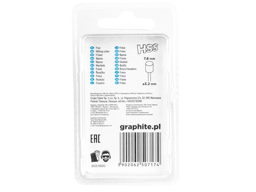 HSS GRAPHITE fréza (ref. 55H060) valcová s priemerom 7,8 mm. Sada obsahuje 2 kusy. Určené na použitie s mini mlynčekom. Vhodné na tvarovanie, dutinkovanie, drážkovanie, vysekávanie, vytváranie závitových otvorov v rôznych materiáloch. Vhodné na kovy, plasty, sklolaminát a drevo.