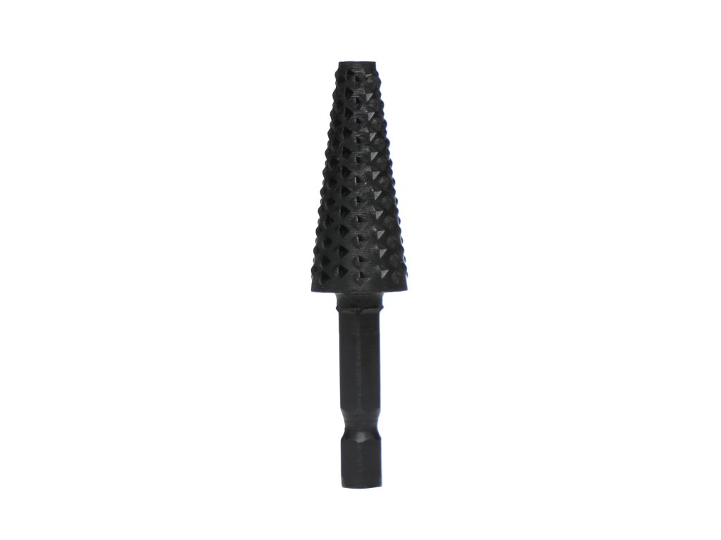 Kónický fréza - škrabka slúži na rýchle a efektívne opracovanie dreva, vrátane vytvárania zárezov a rýchleho odstraňovania prebytočného materiálu. Má šesťhrannú stopku ?“, vďaka čomu je kompatibilný s väčšinou vŕtačiek dostupných na trhu, ideálny pre akumulátorové vŕtačky. Brúska je vyrobená z nástrojovej ocele.