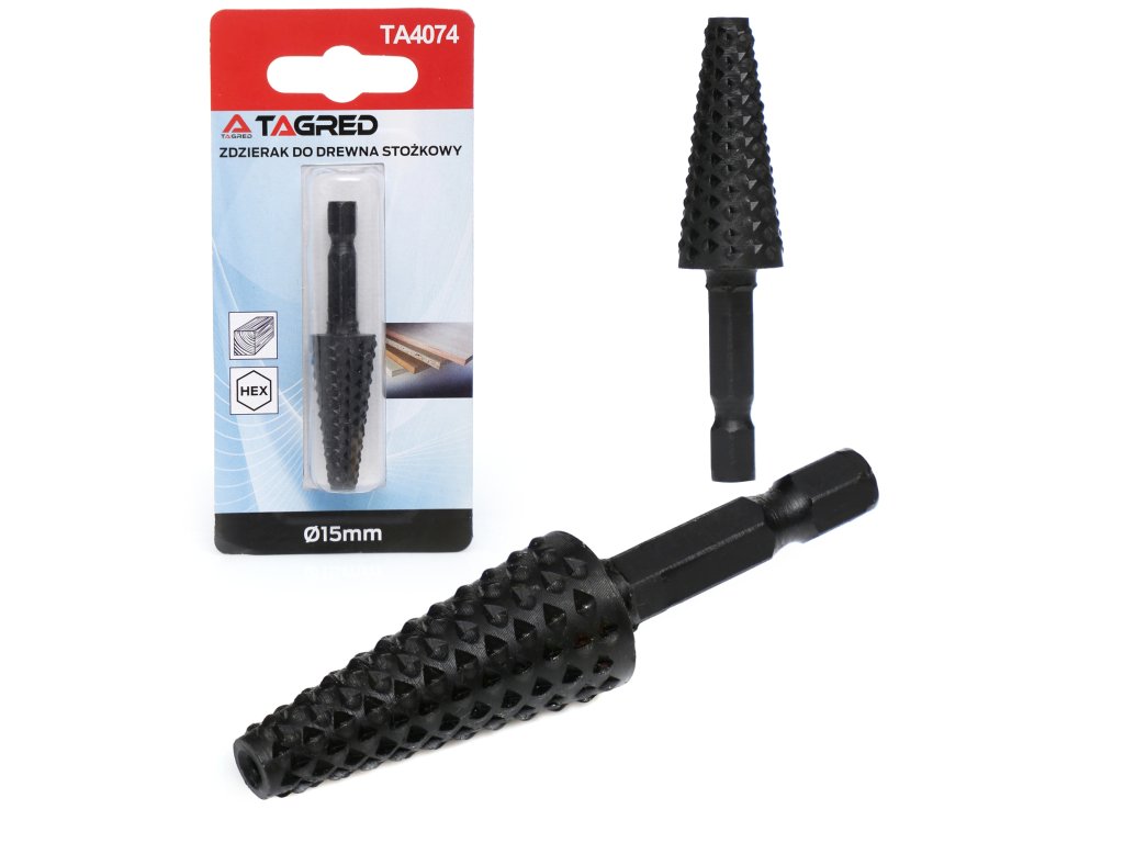 Škrabka, kužeľový fréza na drevo - rašple, 6-hranná stopka 15 mm TA4074