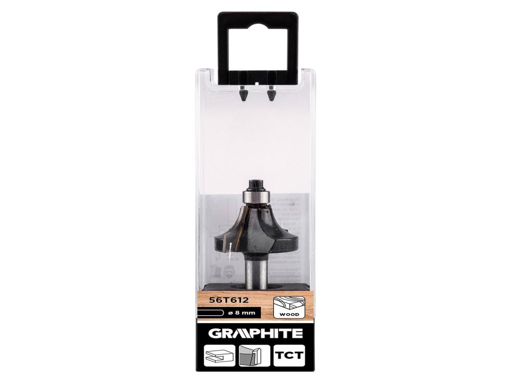 Fréza do dreva s ložiskom, dekoratívna, widia, 38,1 x 19 mm, stopka 8 mm 56T611 od spoločnosti GRAPHITE je fréza s odskrutkovateľným ložiskom, s priemerom čepele 38,1 mm, výškou 19 mm a celkovou dĺžkou 60 mm. Jeho rádius je 12,7 mm. Je tiež vybavený 8 mm dlhou stopkou. Fréza je vyrobená z karbidu volfrámu (TCT), čo zaručuje odolnosť a presnosť. Vďaka dvom rezným hranám je ideálna na vytváranie rovných drážok, drážok a drážok. Umožňuje zaoblenie hrán dreva a materiálov na báze dreva, takže je vhodná na stolárske a nábytkárske práce.