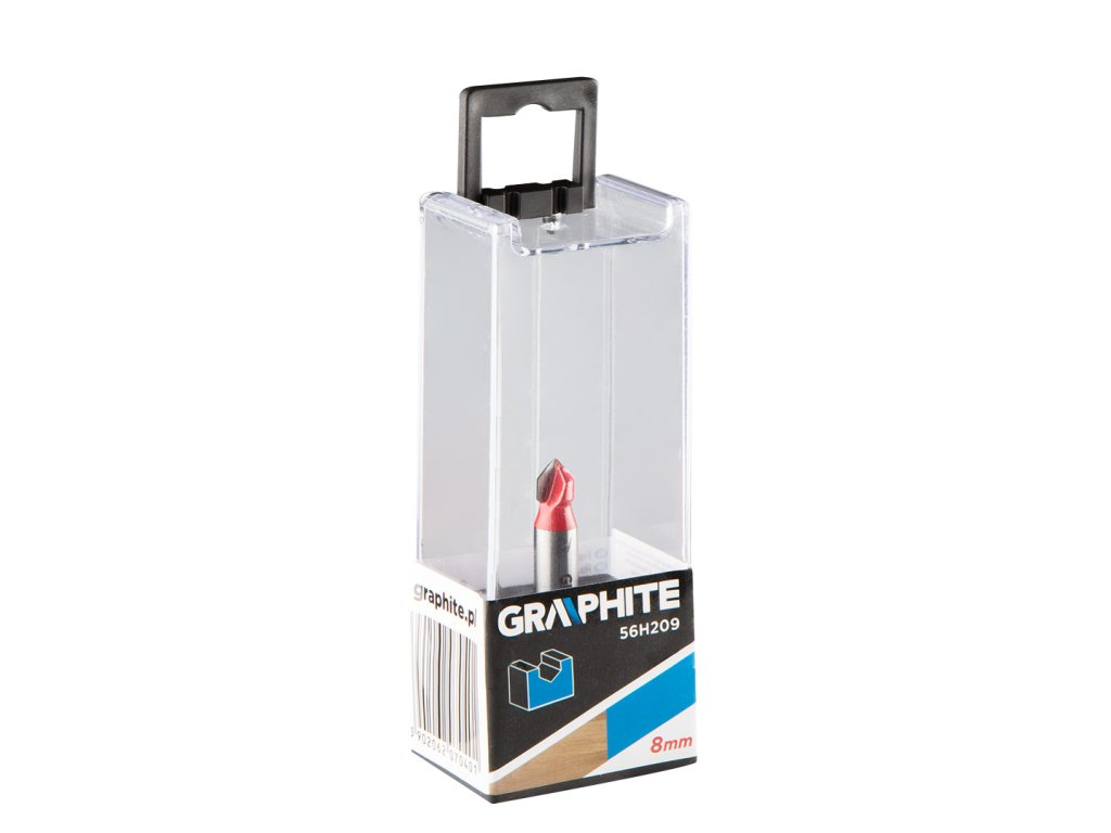 Fréza s V-drážkou, HM, 8 x 8 mm, stopka 8 mm GRAPHITE (ref. 56H209) je určená na presné obrábanie napr. dreva, PVC, drevotriesky pomocou frézy. Hlava je vybavená reznými doštičkami zo spekaného karbidu. Rozmery pracovnej časti: priemer 8 mm, výška 8 mm; priemer stopky 8 mm.
