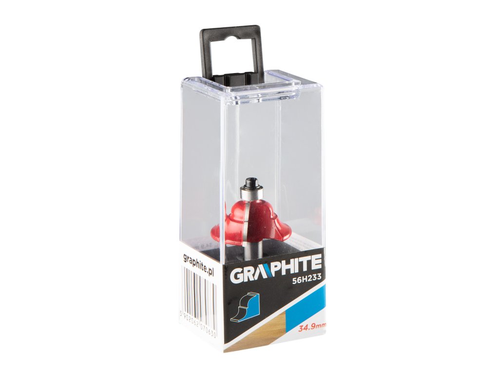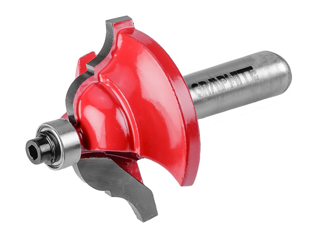 Tvarová fréza s ložiskom, dekoratívna, HM, 34,9 x 15 mm, stopka 8 mm GRAPHITE (ref. 56H233) určená na presné obrábanie napr. dreva, PVC, drevotriesky pomocou frézy. Hlava je vybavená reznými doštičkami zo spekaného karbidu. Fréza je vybavená ložiskom, ktoré uľahčuje vedenie frézy. Rozmery pracovnej časti: priemer 34,9 mm, výška 15 mm; priemer stopky 8 mm.