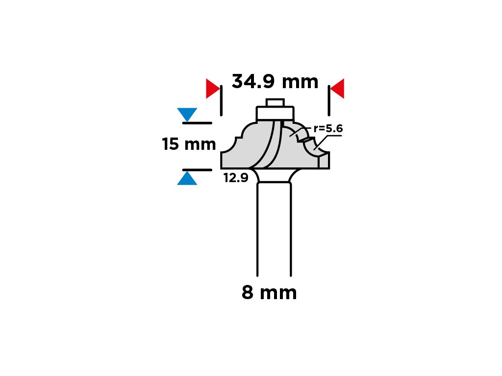 Fréza tvarová s ložiskom, ozdobná, HM, 34,9 x 15 mm, stopka 8 mm 56H233