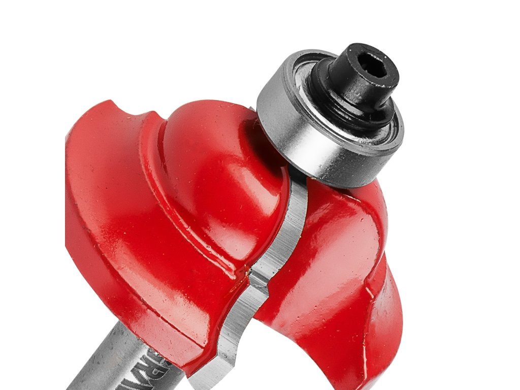 Ramenná fréza s ložiskom, dekoratívna, HM, 39,3 x 15,9 mm, stopka 8 mm GRAPHITE (ref. 56H231) určená na presné obrábanie napr. dreva, PVC, drevotriesky pomocou frézy. Hlava je vybavená reznými doštičkami zo spekaného karbidu. Fréza je vybavená ložiskom, ktoré uľahčuje vedenie frézy. Rozmery pracovnej časti: priemer 39,3 mm, výška 15,9 mm; priemer drieku 8 mm.