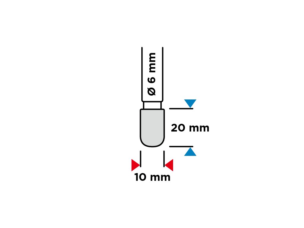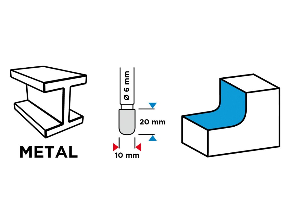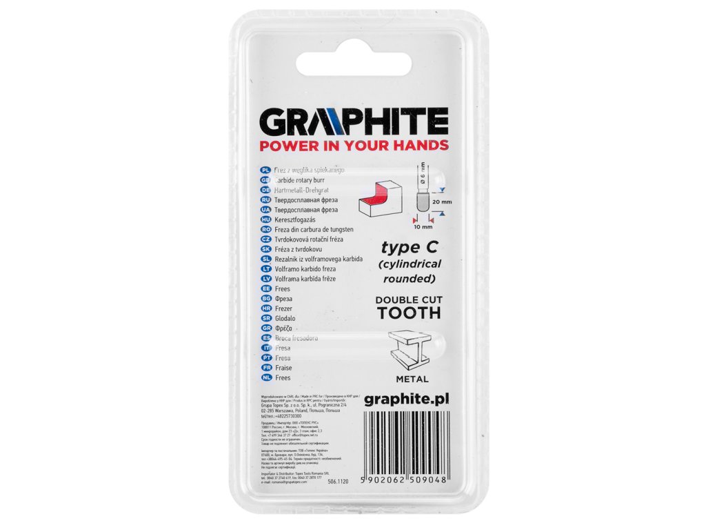 Fréza na kov GRAPHITE (ref. 55H360) typ C (zaoblený valec) s rozmermi 10 x 20 mm je priamy brúsny nástroj na rezanie alebo pilovanie povrchu obrobku. Je určený na prácu s materiálmi, ako sú kovy, hliník a plasty. Použitie spekaného karbidu dodáva nástroju vysokú tvrdosť a odolnosť voči abrazívnemu opotrebovaniu. Fréza je vybavená dvojitým rezaním, ktoré umožňuje ľahké odstraňovanie triesky z obrobku.