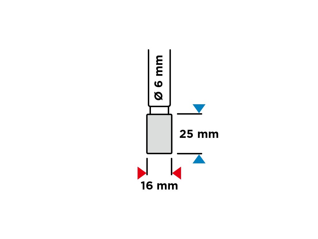 Kovová čelná fréza, typ B valcová (B 1625), karbid, priemer 16 mm, dvojitý rez, pracovná dĺžka 25 mm, stopka 6 x 45 mm, pre priame brúsky.