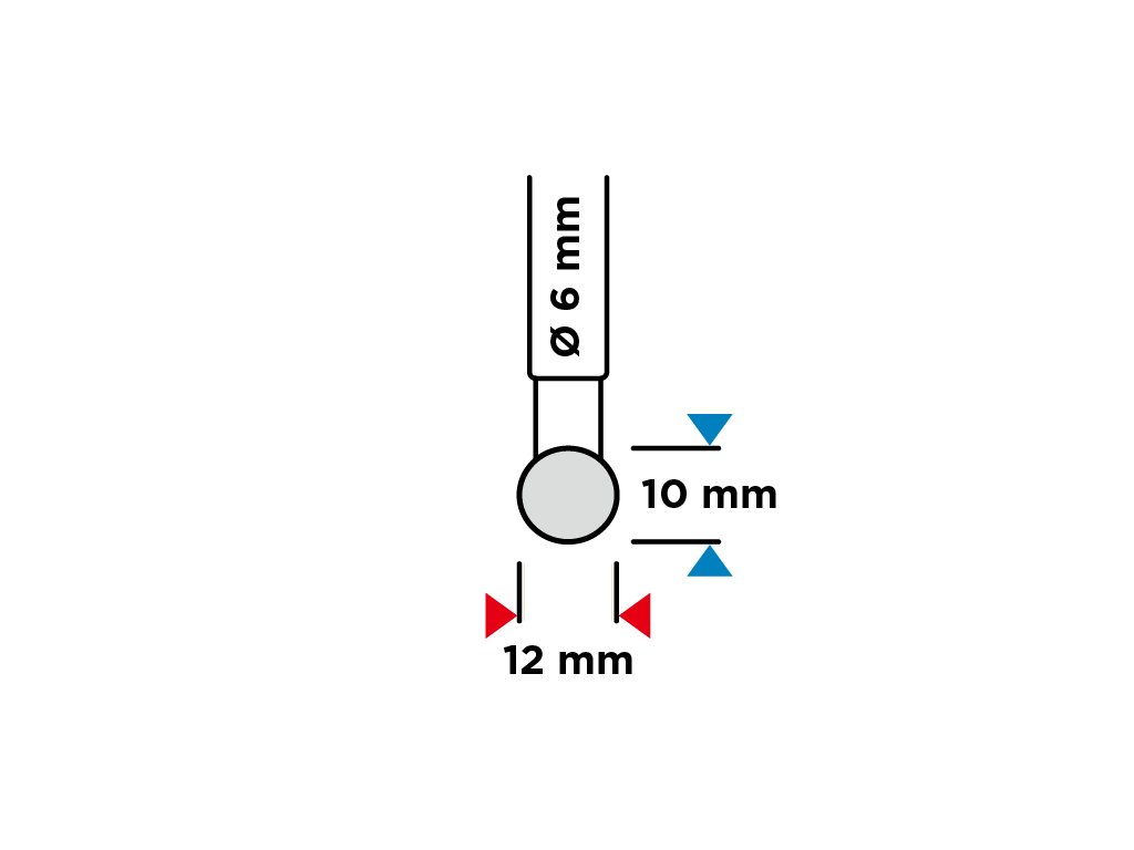 Kovová čelná fréza, typ D - guľová (D 1210), karbid, priemer 12 mm, dvojitý rez, pracovná dĺžka 10 mm, stopka 6 x 45 mm, pre priame brúsky.