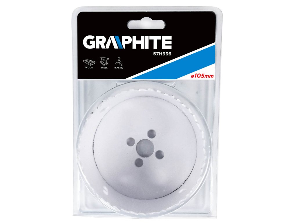 Bimetalová dierovka GRAPHITE prostredníctvom progresívnych zubov vyrobených z rýchloreznej ocele umožňuje efektívne vŕtanie presných otvorov v oceli, nerezovej oceli, dreve, plastoch, kompozitných materiáloch.