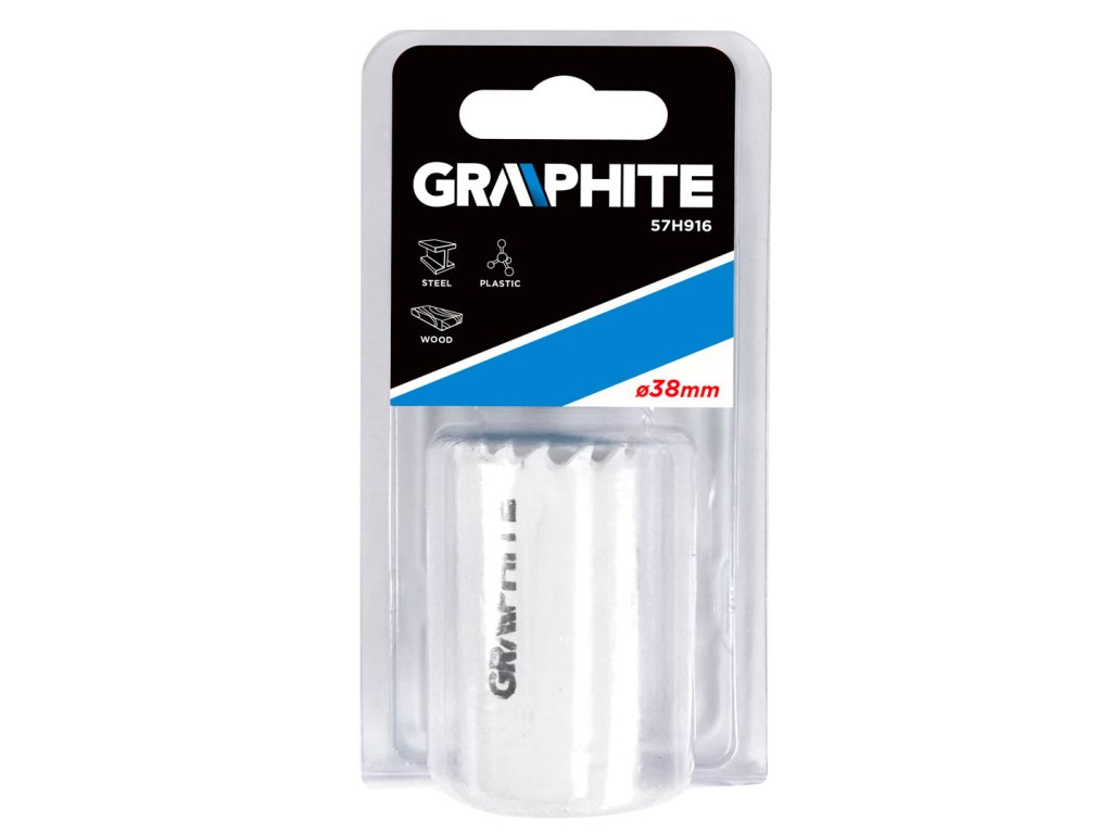 Bimetalová dierovka GRAPHITE prostredníctvom progresívnych zubov vyrobených z rýchloreznej ocele umožňuje efektívne vŕtanie presných otvorov v oceli, nerezovej oceli, dreve, plastoch, kompozitných materiáloch.