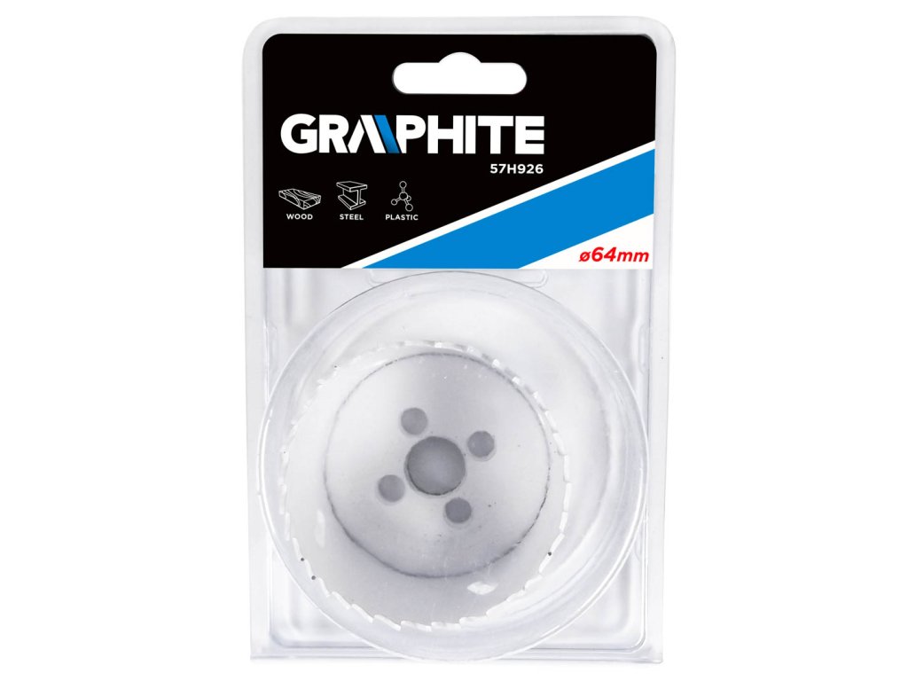 Bimetalová dierovka GRAPHITE prostredníctvom progresívnych zubov vyrobených z rýchloreznej ocele umožňuje efektívne vŕtanie presných otvorov v oceli, nerezovej oceli, dreve, plastoch, kompozitných materiáloch.