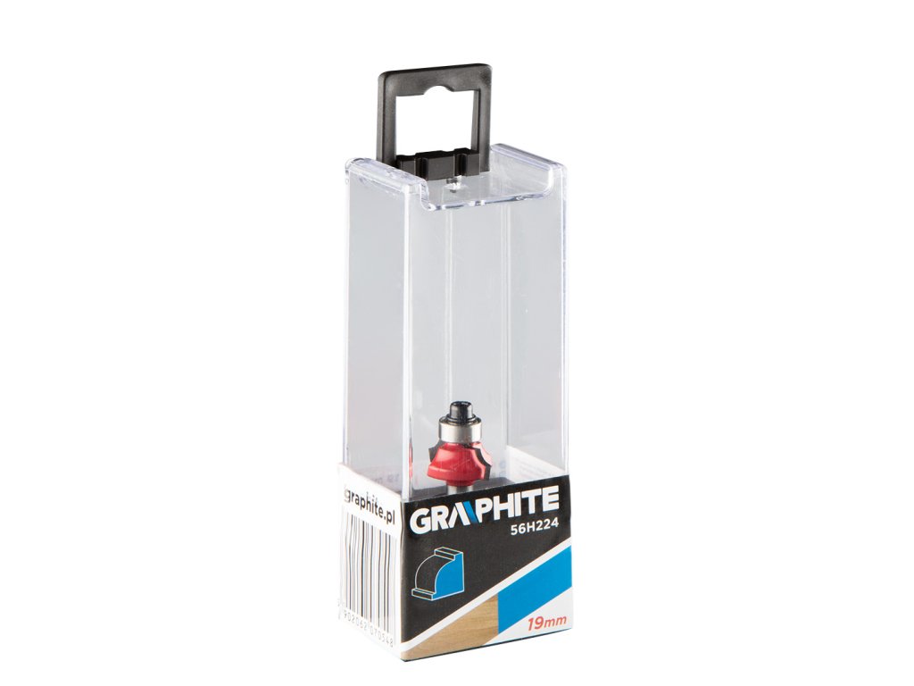 Tvarovací fréza s ložiskom, zaoblenie, HM, 19 x 6,5 mm, stopka 6 mm GRAPHITE (ref. 56H224) určená na presné obrábanie napr. dreva, PVC, drevotriesky pomocou frézy. Hlava je vybavená reznými doštičkami zo spekaného karbidu. Fréza je vybavená ložiskom, ktoré uľahčuje vedenie frézy. Rozmery pracovnej časti: priemer 19 mm, výška 6,5 mm; priemer stopky 6 mm.