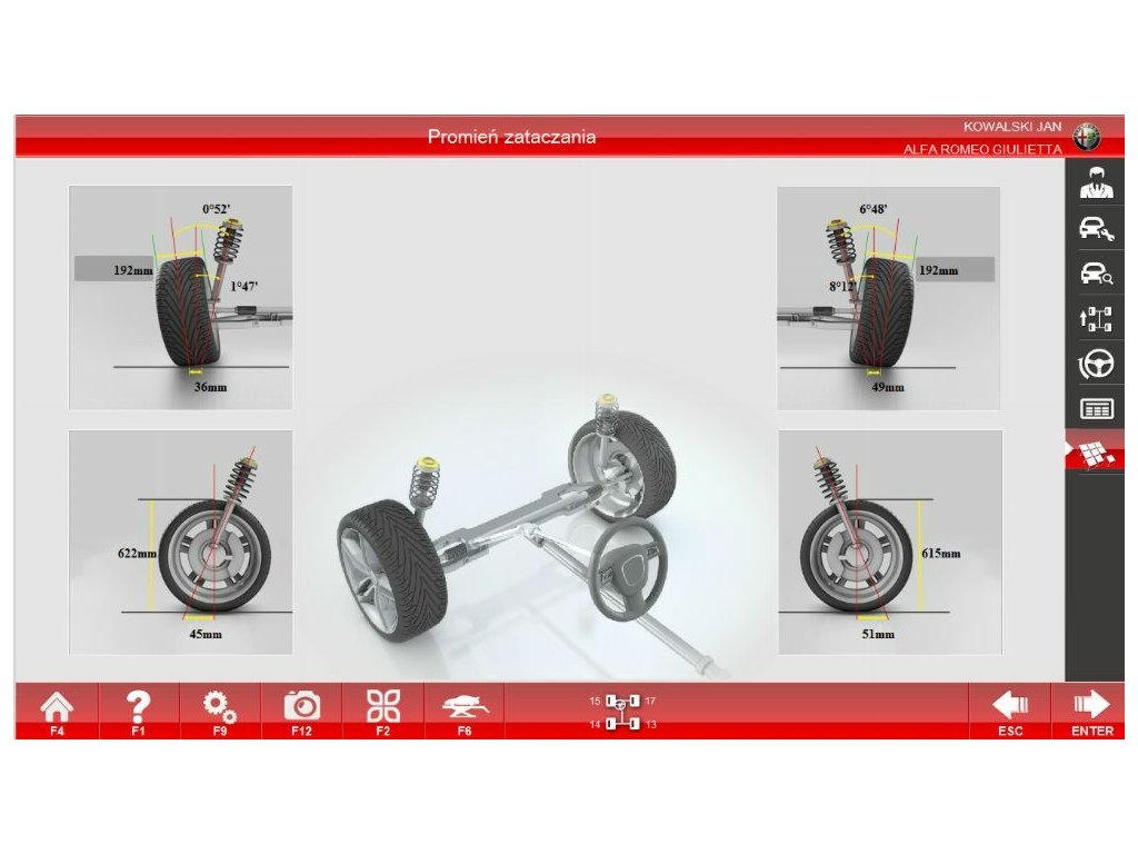 Zariadenie vykoná potrebné merania bez potreby zdvihnutia vozidla – šetrí čas a zjednodušuje proces. -