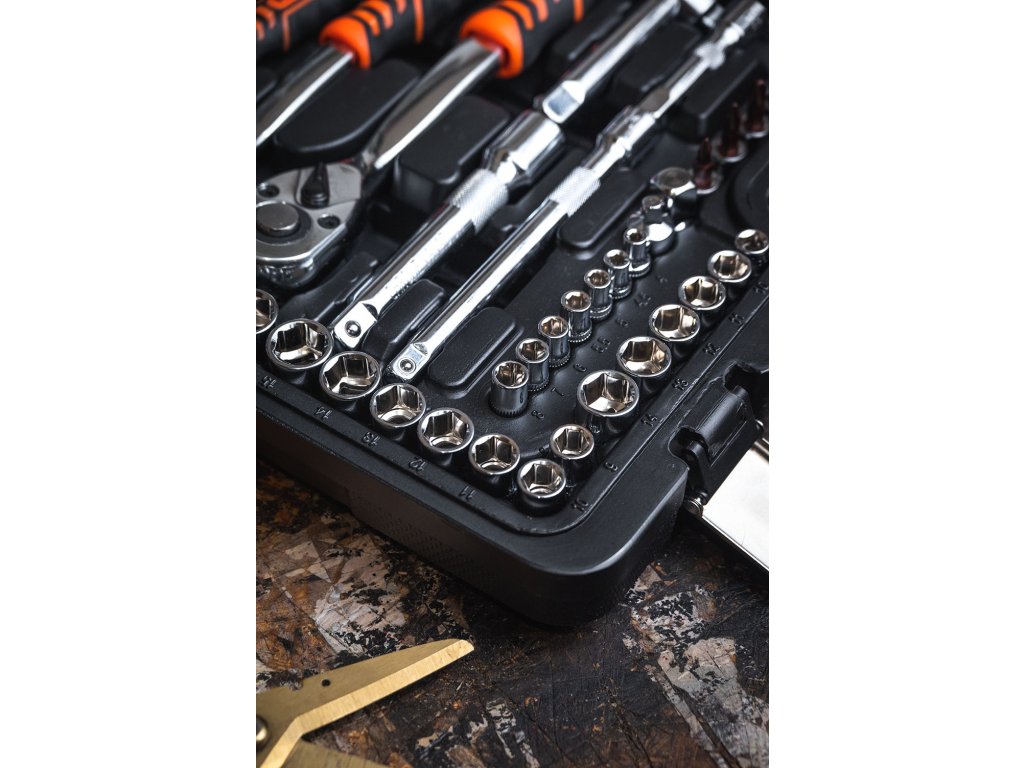 Veľká profesionálna sada nástrčného náradia je ideálnou voľbou pre každého profesionála či menej skúseného majstra. Súprava poskytuje všetko potrebné pre bežné opravy a montáž/demontáž v domácnosti, dielni či garáži. S touto gola sadou si poradíte aj v situáciách, ktoré si vyžadujú neštandardné riešenia.