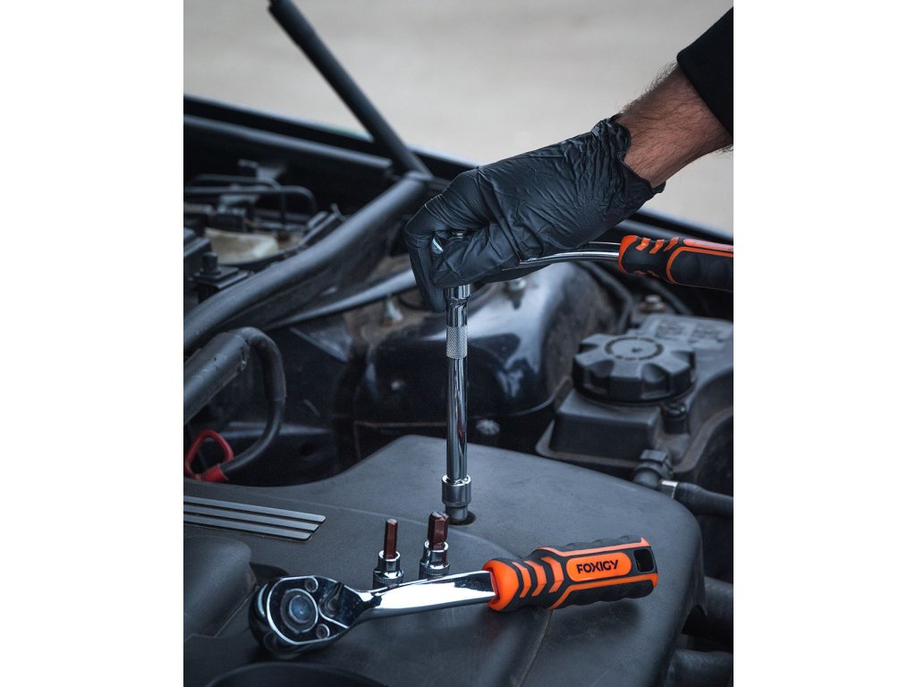 Vďaka 72 zubom je skok západky pri otočení o 5 stupňov. Menší uhol v porovnaní s 42-zubovým mechanizmom uľahčuje prácu na miestach, kde nie je dostatok miesta pre veľký záber otáčania. Sada obsahuje aj niekoľko predĺžení, s ktorými bude práca na ťažko prístupných miestach ešte jednoduchšia.