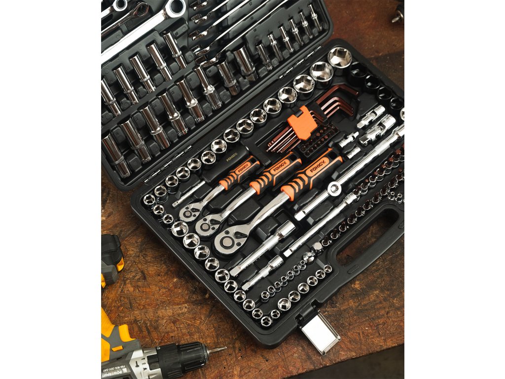 Profesionálna gola sada obsahuje 163 kusov náradia, 1/2" - 3/8" - 1/4", od nástrčných kľúčov po račne, kľúče či skrutkovače určené pre tých najnáročnejších majstrov.