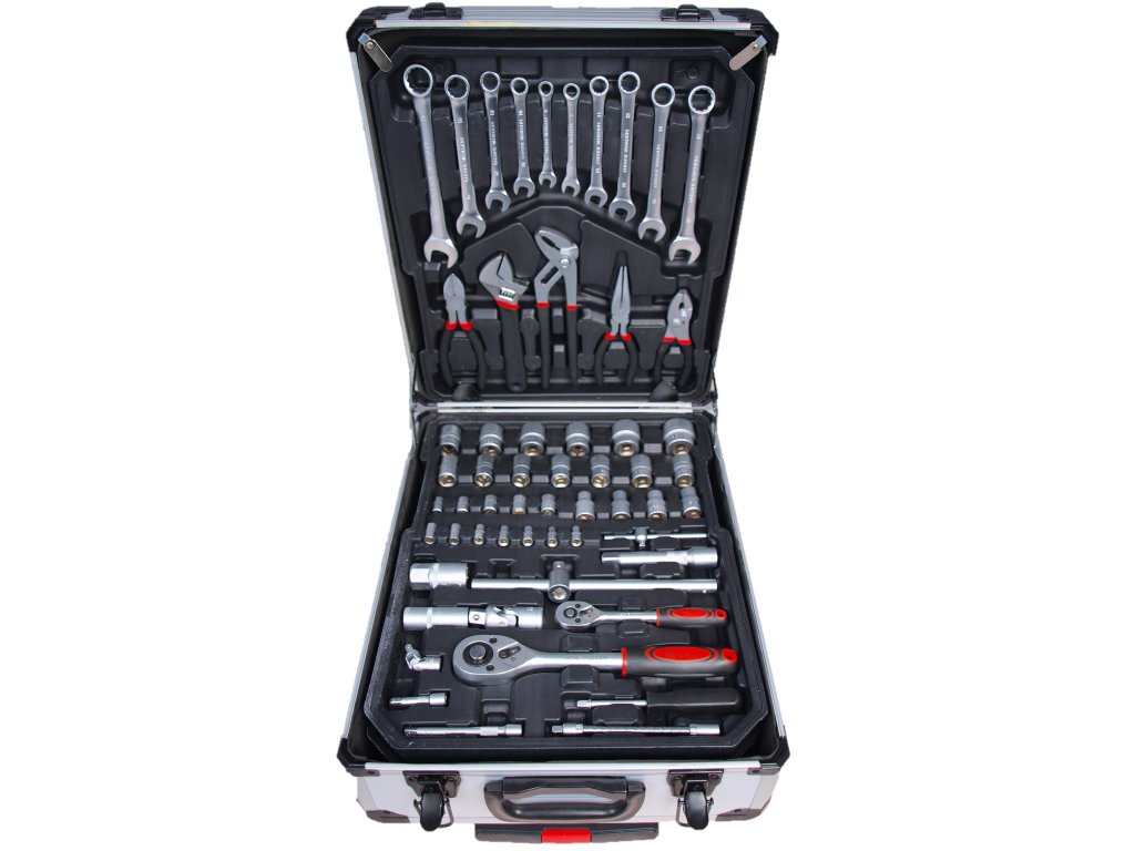 Kufor s kompletným náradím zabaleným v praktickom kufri na kolieskach.