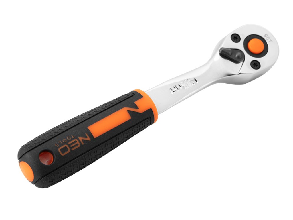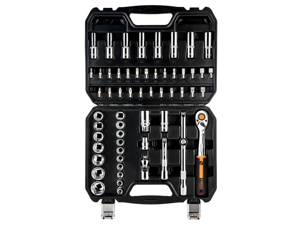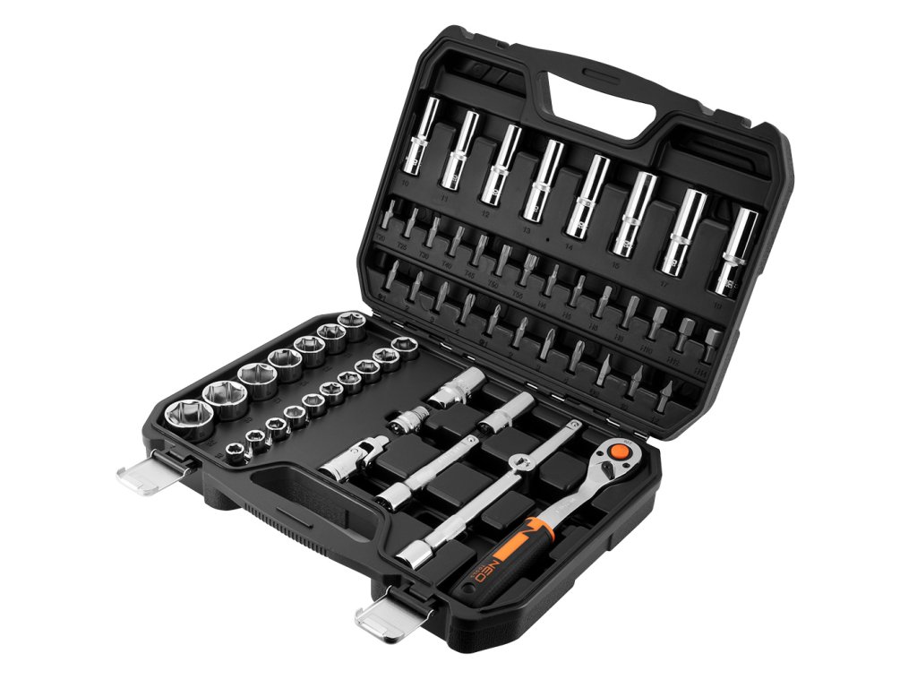 Sada nástrčných kľúčov NEO 1/2" (ref. 10-042) pozostáva z 58 prvkov vyrobených z vysokokvalitnej chróm-vanádiovej ocele. Súprava obsahuje ohnutú račňu s odolným račňovým mechanizmom (90 zubov) a ergonomickou rukoväťou. Sada obsahuje širokú škálu nástrčných hlavíc (vo veľkostiach od 10 do 32 mm) a skrutkovacích bitov (ploché, krížové, šesťhranné, Torx). Doplňujú ich nadstavce, kľučka, univerzálny kĺb, adaptér na bity a zásuvky. Celé sa dodáva v praktickom a robustnom plastovom puzdre. Spoľahlivosť výrobku potvrdzuje 25-ročná záruka. Značka NEO spĺňa očakávania profesionálov.