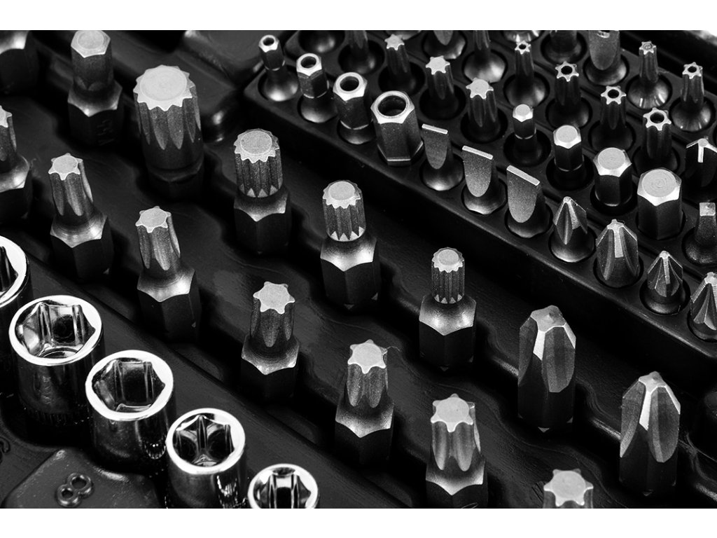 Nástrčné kľúče 219 ks, 1/4", 3/8", 1/2", CrV oceľ, šesťhranné hlavice 1/2" 15 ks: 10, 11, 12, 13, 14, 15, 17, 19, 20, 21, 22, 24, 27, 30, 32 mm, 1/2" dlhé nástrčné hlavice 5 ks: 16, 17, 18, 19, 22 mm, E nástrčné hlavice 1/2" 4 ks: E18, E20, E22, E24; 1/2" sviečkové zásuvky 16 mm a 21 mm; 1/2" nástavce: 1/2" univerzálny kĺb, 1/2" dutý adaptér, 1/2" bitová zásuvka T55, T60; 1/2" račňa, 90 zubov, kľúče 12 ks: 8, 9, 10, 11, 12, 13, 14, 15, 16, 17, 18, 19 mm; držiak bitov 1/2", 5/16"; objímka na sviečky 3/8" 18 mm, šesťhranná objímka 3/8" 10 ks: 10, 11, 12, 13, 14, 15, 16, 17, 18, 19 mm; šesťhranná objímka 3/8", dlhá 6 ks. 10, 11, 12, 13, 14, 15 mm; zásuvka E, 3/8" 5 ks: E8, E10, E12, E14, E16; predĺženie 3/8" 125 mm, univerzálny kĺb 3/8"; držiak bitov 3/8", 5/16"; račňa 3/8" 90 zubov; nástrčné hlavice 1/4" 13 ks: 4, 4,5, 5, 5,5, 6, 7, 8, 9, 10, 11, 12, 13, 14 mm, nástrčné hlavice 1/4" dlhé: 4, 5, 6, 7, 8, 9, 10 mm; predĺženie 1/4" 100 mm, predĺženie 1/4" 50 mm, nástrčné hlavice E 1/4" 5 ks: E4, E5, E6, E7, E8; univerzálny kĺb 1/4"; kľučka 115 mm; račňa 1/4", 90 zubov; šesťhranné kľúče 10 ks: 1,27 mm (x2), 1,5 mm (x2), 2 mm(x2), 2,5 mm, 3 mm, 4 mm, 5 mm; držiak bitov 1/4"; rukoväť skrutkovača 1/4" CrV; kľučka zberača 1/4", rukoväť 65 mm; zásuvka 1/4", 30 ks s bitom: SL4, SL5,5, SL6,5, SL7, PZ1, PZ2, PZ3, TX8, TX9, TX10, TX15, TX20, TX25, TX27, TX30, TT8, TT9, TT10, TT15, TT20, TT25, TT27, TT30, HEX3, HEX4, HEX5, HEX6, PG1, PG2, PG3; 30 mm bity, 30 ks. : TX25, TX27 (x2), TX30 (x2), TX35 (x2), TX40 (x3), TX45 (x2), TX50 (x2), HEX5.5, HEX6 (x2), HEX7, HEX8, SL6, SL6.5, SL8, PH3, PH4, PZ3, PZ4, M5, M6, M8, M10; bity 25 mm 44 ks: HEX3, HEX4, HEX5, HEX6, HH3, HH4, HH5, HH6, PH1, PH2, PZ1, PZ2, TX8, TX10, TX15, TX20, TX25, TT8, TT10 (x2), TT15, TT20(x3), TT25(x2), TT40, M5, M6, M8, SL4, SL5, SL5. 5; TRI-WING: 1, 2, 3; TORQ 6, 8, 10, S1, S2, ploché 4, 6, 8. Záruka 25 rokov. Certifikát TÜV Rheinland M+T.