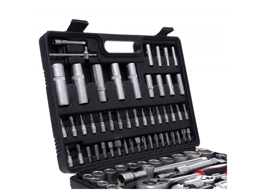 Dielenské náradie a nástrčne kľúče (orechy) sú vyrobené z vysokokvalitných materiálov CrV. Gola sadu môžete používať v garáži aj vlastnej dielni. Praktický kufrík je vyrobený z kvalitného materiálu a každý komponent v ňom má svoje miesto.
