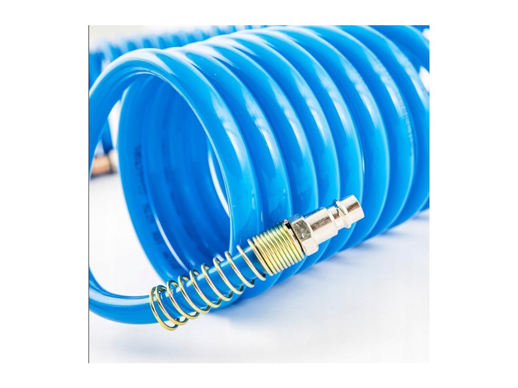 Špirálová pneumatická polyetylénová hadica 12x8 mm o dĺžke 10 metrov štandardnej kvality.