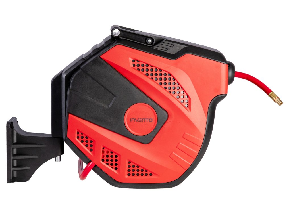 Brand: INVENTO Casing Material: PP Casting Color: red-black Hose Length: 20+2m Hose color: red Hose Material: PVC Hose Size: 3/8"(9.5 x 15.8mm) Fitting: 1/4"BSPT male thread Working Pressure: 150psi (10 bar) Bursting pressure: 450psi (30 bar) Working temperature: -5°C to + 55°C Bracket (plastic) and screws are included Size:51*27.5*47cm G.W.:11kgs N.W.:10kgs Smoothly rewind the hose automatically. Automatically locks at every 5cm Slow retraction and free stop Hose guide system Wall mounted and 180 swivel CE & ROHS Approval Manual included