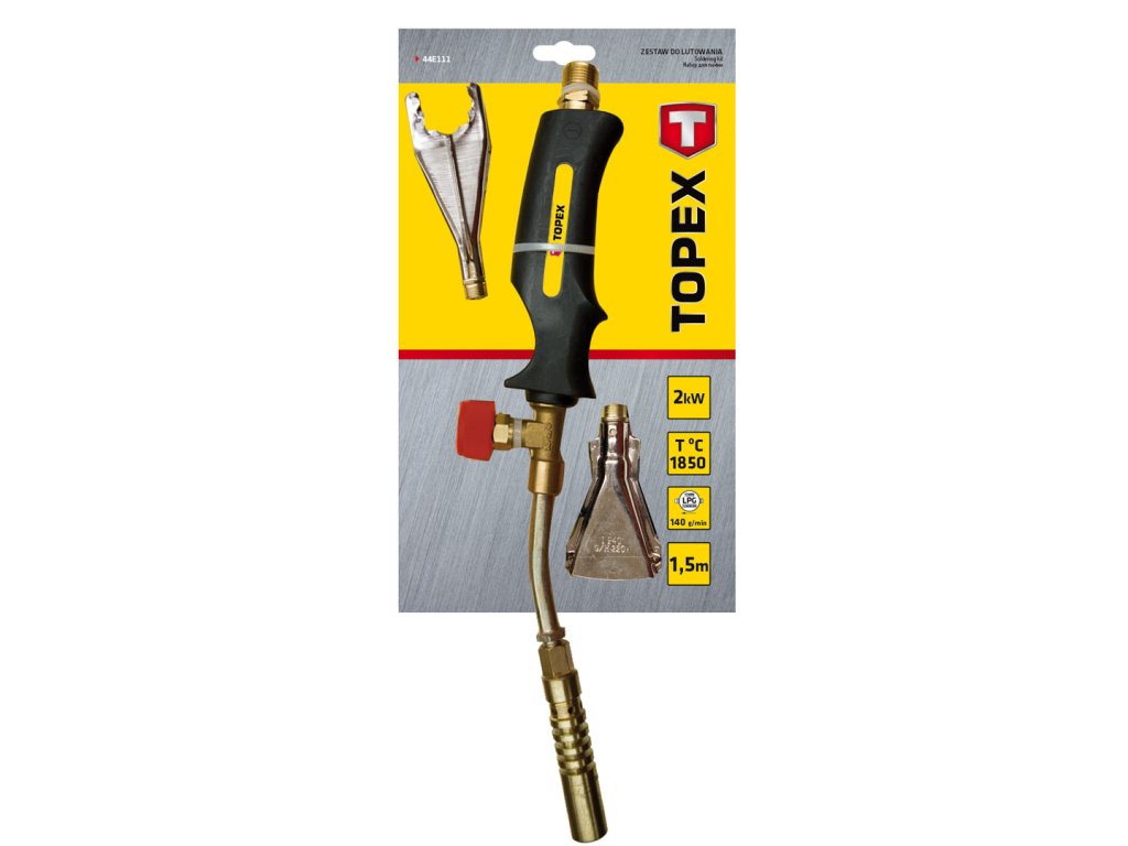 Horák TOPEX (ref. 44E111) s výkonom horáka 2 kW, teplota plameňa 1850 °C. Súprava obsahuje 3 horáky: bodový, okolitý a plochý. Okolitý horák zohrieva medenú rúru rýchlejšie, pretože plameň zohrieva rúru súčasne v mnohých bodoch. Plochý horák je určený na zahrievanie povrchov, z ktorých chcete odstrániť staré farby alebo laky. S 1,5 m hadicou. Súprava je ideálna na práce v dielni, ako aj na spájkovanie medených inštalácií. Značka TOPEX je určená pre domácich majstrov.