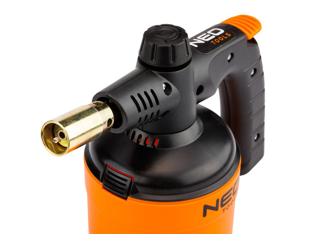 Plynový horák na 190 g kartuše, piezoelektrické zapaľovanie 20-024 od spoločnosti NEO TOOLS je zariadenie určené na spájkovanie, opálenie, tvarovanie a ohýbanie rúr. Spájkovacia lampa na 190 g kartuše je vybavená reguláciou prietoku plynu, piezoelektrickým zapaľovaním a robustným mosadzným horákom. Ponúka výkon 1,1 kW a má priemernú spotrebu plynu 80 g/h. Je určená na prevádzku pri teplotách do 1350 °C. Vďaka svojmu dizajnu a ľahkému plastovému puzdru je praktický a pohodlný na používanie. Spájkovacia lampa NEO TOOLS bude neoceniteľným pomocníkom pri domácich majstrovstvách, modelárstve a zváraní.