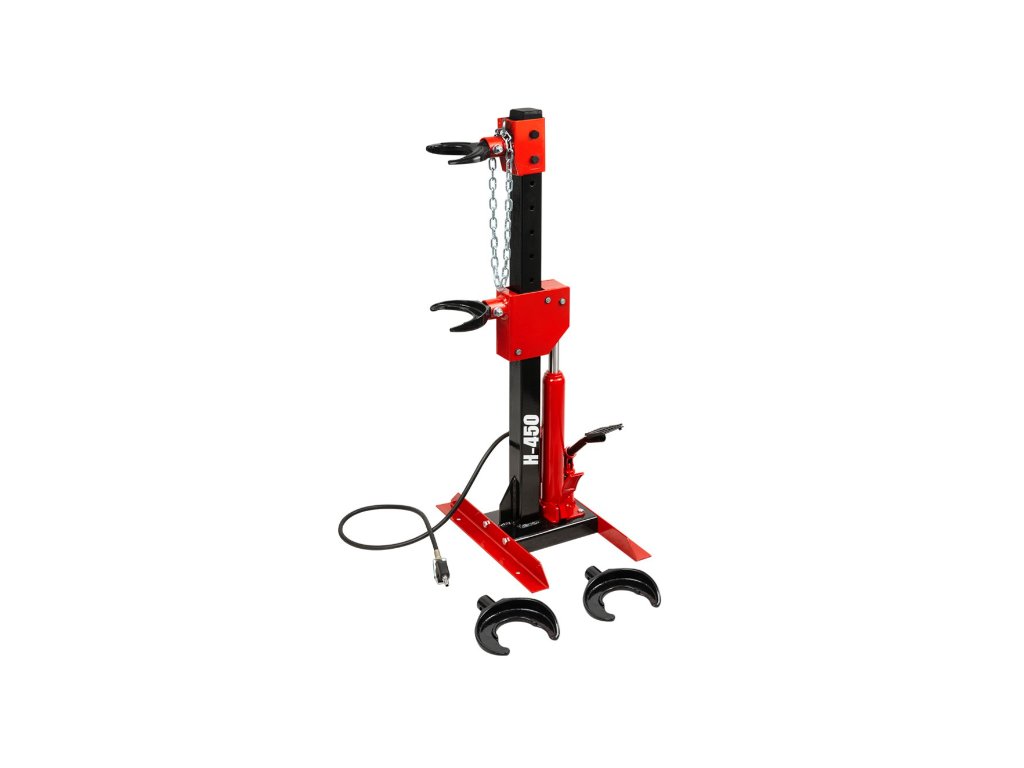 Hydraulicko-pneumatický sťahovák pružín. Zaťaženie: 1T, hmotnosť: 39 kg. Výška: 120 cm, Rozmery: 365 x 495 mm