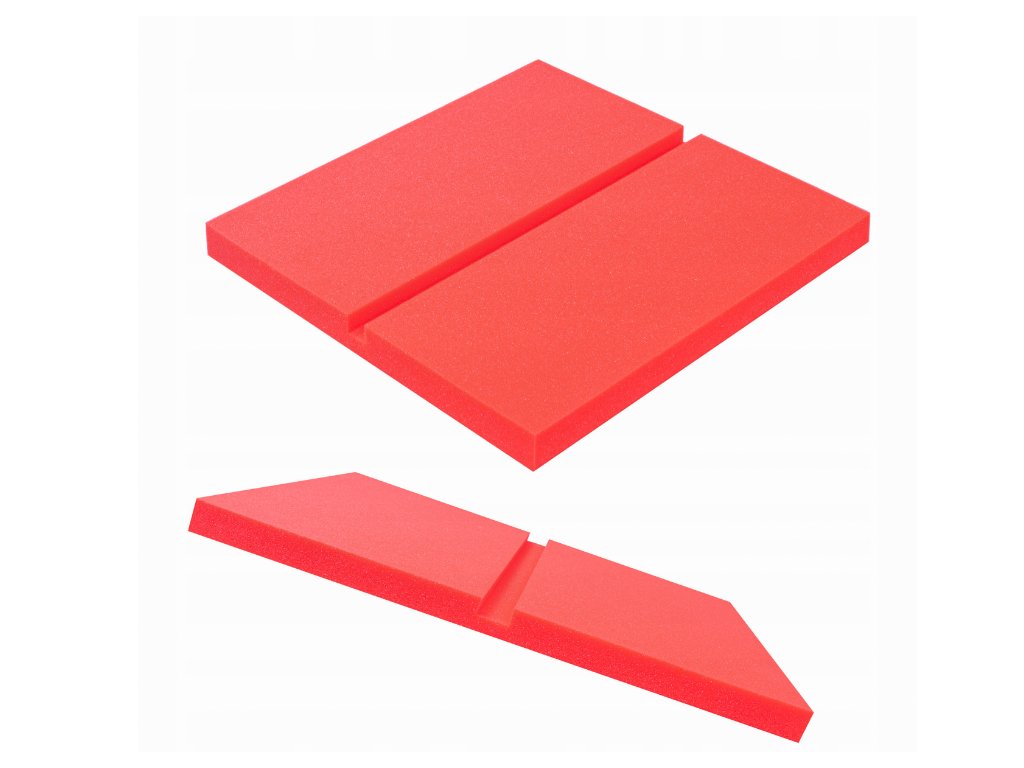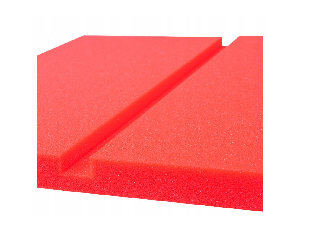 Dekoračný akustický panel Obdĺžniky 50×50×3 cm. PU pena Bitmat AF-25, redukuje echo a dozvuk. Rýchla montáž. Farba: červená.