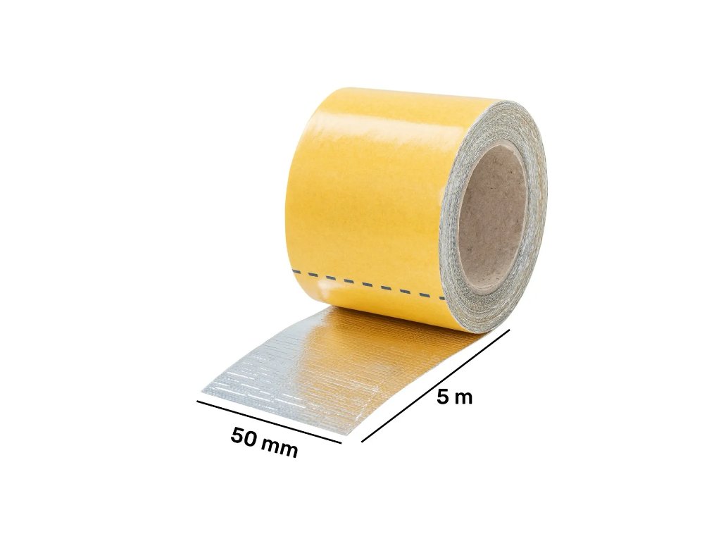 Sklotextilná hliníková páska do 600 °C, 5 m, šírka 50 mm. Samolepiaca – maximálne prekrytie a tepelná ochrana.