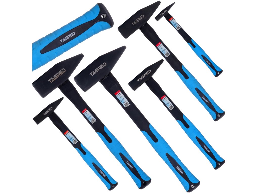 Sada 6 ľahkých, ale zároveň veľmi odolných zámočníckych kladív s rúčkou z laminátu (fiberglass), odolného voči teplotným zmenám a poveternostným podmienkam (neabsorbuje vlhkosť zo vzduchu). Protiskluzové rukoväte pokryté semi-soft touch gumou poskytujú používateľovi maximálny komfort pri práci - istý úchop náradia. Dôležitá je aj relatívne dlhá rúčka, ktorá zvyšuje silu úderu. Hlava kladív je vyrobená z vysoko kvalitnej ocele. Kladivá sú veľmi odolné a odolné proti poškodeniu. Naša sada je vynikajúcou voľbou pre stavebné práce, práce v domácnosti, záhrade alebo dielni.
