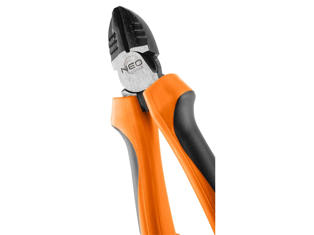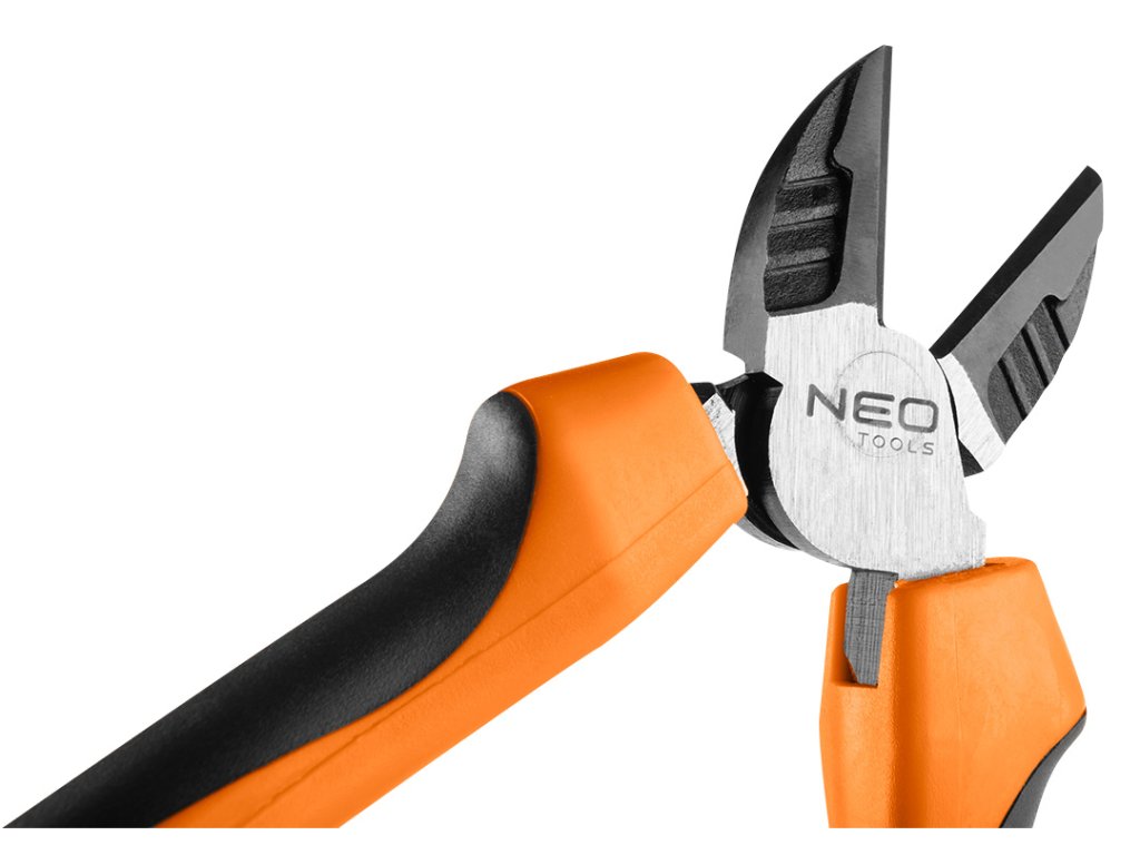 Bočné kliešte NEO 40% FS (ref. 01-157), dlhé 180 mm, sú určené na strihanie elektrických vodičov, drôtov alebo montážnych pásov. Sú vyrobené z vysoko kvalitnej CrNi ocele s antikoróznou ochranou. Dvojzložková rukoväť s gumovými prvkami zabraňuje skĺznutiu ruky pri používaní nástroja. Konštrukcia klieští umožňuje znížiť silu vyvíjanú na tlak o 40 %.
