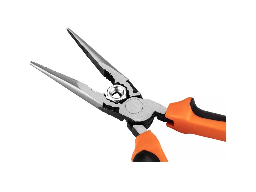 Priame úchopové kliešte, dĺžka 200 mm, 40 % úspora sily posunutím stopky bližšie k čeľustiam, chrómniklová oceľ proti korózii, 2-zložková rukoväť TPR+ABS, vrúbkovaná hlava.