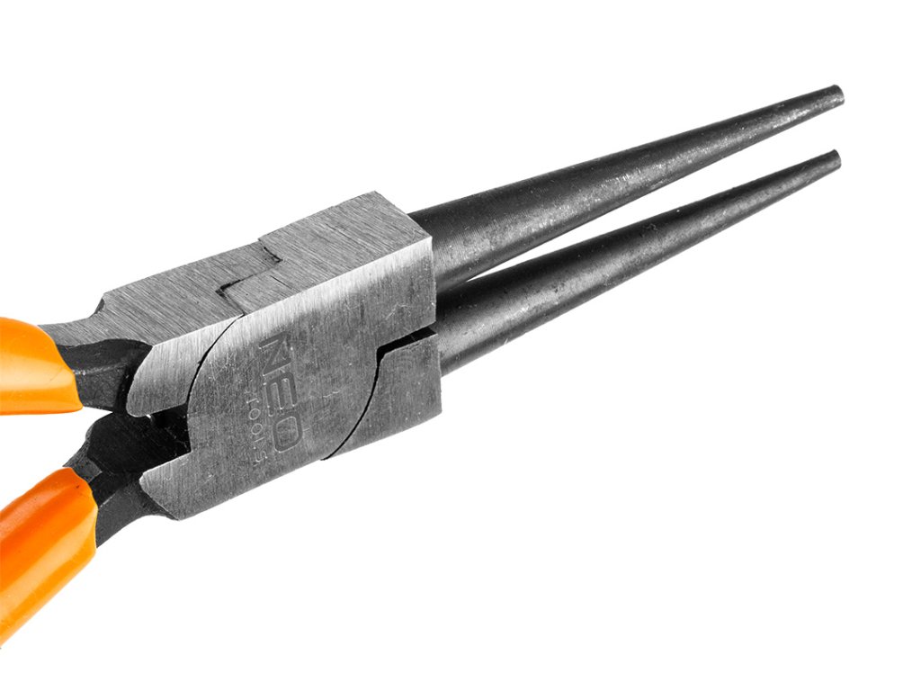 Okrúhle kliešte 160 mm, tenký typ, materiál CS (uhlíková oceľ), rukoväť z PVC, odolné voči chemikáliám (oleje, palivá, tuky)