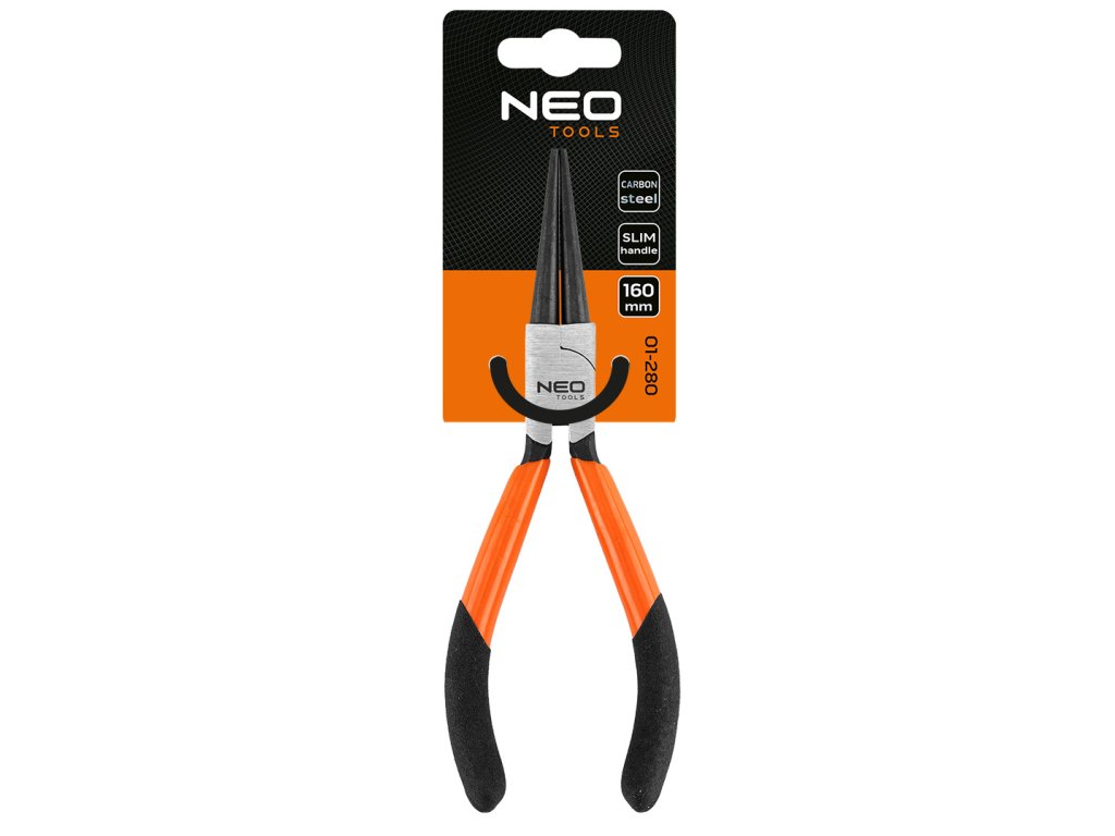 Okrúhle kliešte 160 mm 01-280 od spoločnosti NEO TOOLS sú vysokokvalitným univerzálnym nástrojom patriacim do série klieští. Vyrobené z odolného materiálu CS a so štíhlou rukoväťou z PVC. Rukoväť má protišmykové vlastnosti vďaka svojmu štruktúrovanému dizajnu s istým chodidlom. Okrúhle kliešte značky NEO TOOLS sú odolné voči chemikáliám - tukom, olejom a pohonným hmotám. Osvedčia sa pri mnohých rôznych profesionálnych prácach.