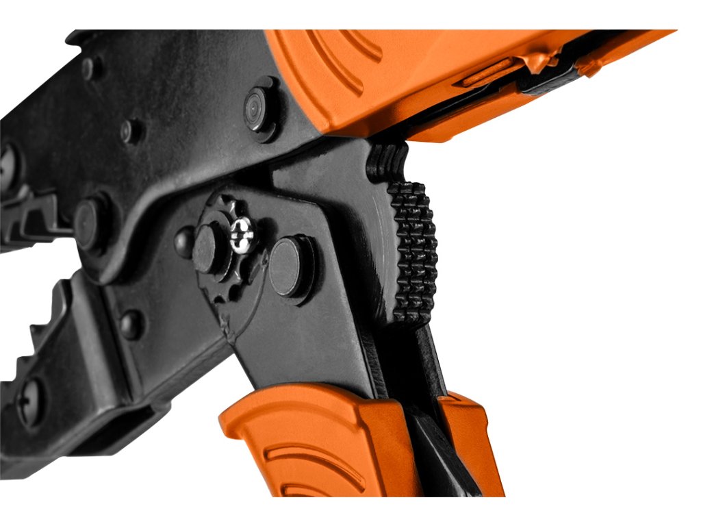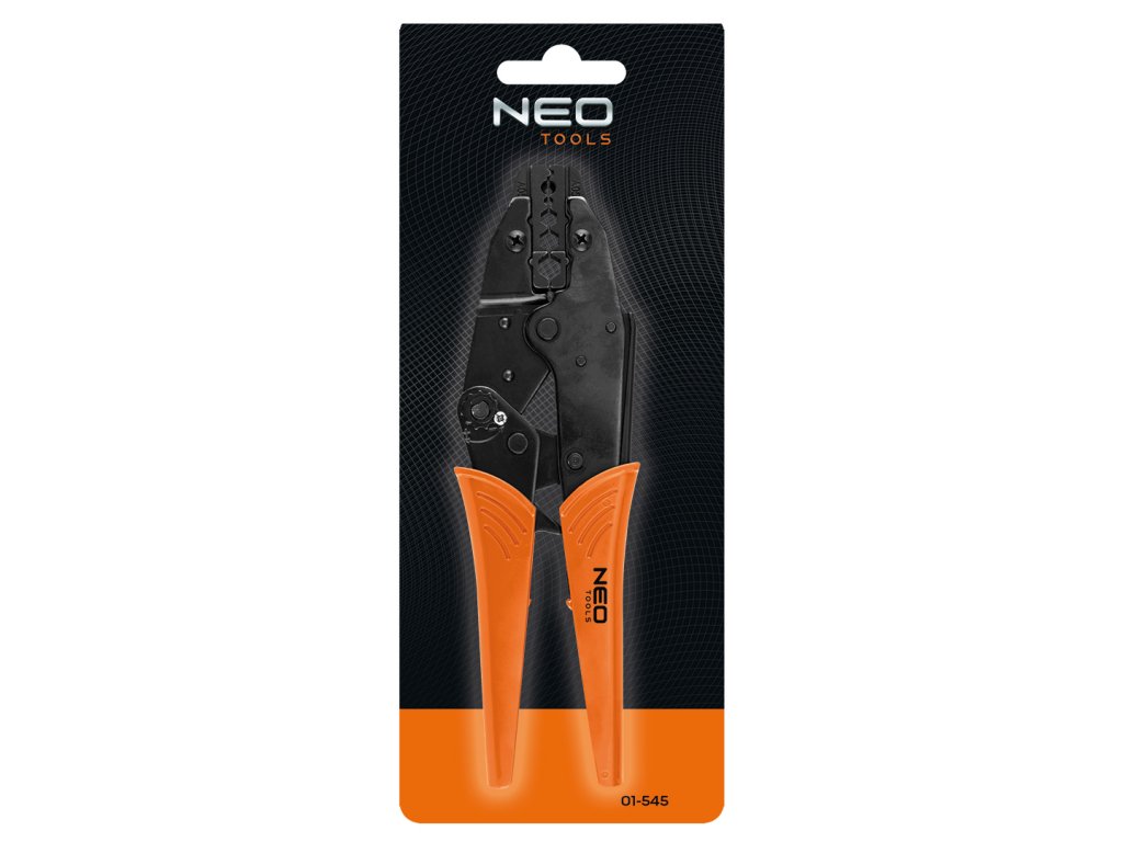 Krimpovacie kliešte na anténne svorky 1,72 - 8,1 mm2, 01-545 od spoločnosti NEO sú ľahko použiteľným nástrojom na krimpovanie anténnych konektorov na kábloch od antén až po televízory. Dĺžka klieští je 240 mm a rozstup čeľustí je od 1,72 do 8,1 mm. Rozsah nástroja - HEX 8,1/6,5/5,4/2,6/1,72 mm2. Hlava klieští je vyrobená z húževnatej uhlíkovej ocele s tvrdosťou 45 HRC. Ráčnový systém zvýhodňuje používanie klieští. Čiernený povrch zaisťuje primeranú odolnosť. Kliešte sú vybavené jednozložkovou a ergonomickou rukoväťou. Značka NEO sa odporúča pre profesionálov.