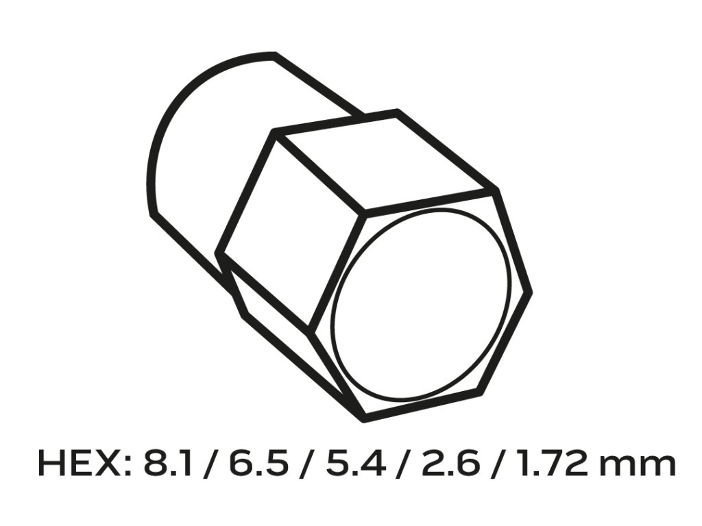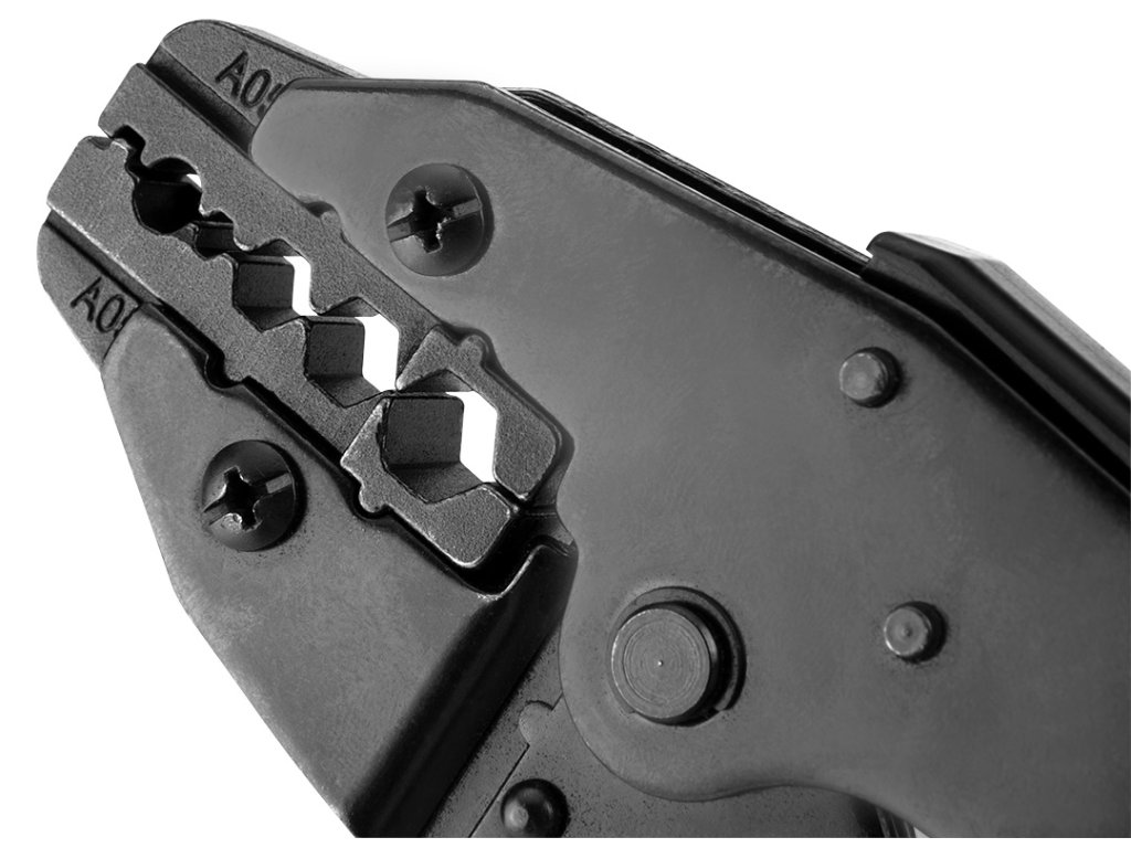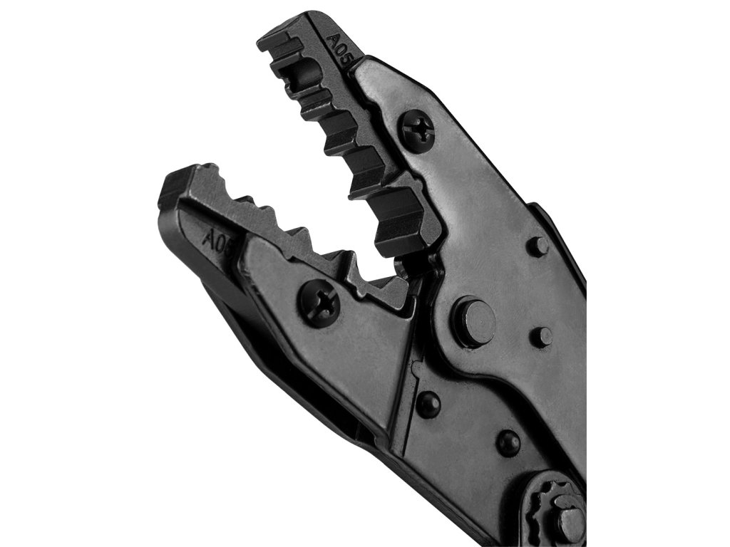 Kliešte na lisovanie anténnych svoriek, dĺžka 240 mm, rozsah HEX 8,1/6,5/5,4/2,6/1,72 mm2, materiál uhlíková oceľ, tvrdosť 45 HRC, leštený povrch, jednozložková rukoväť, západkový mechanizmus