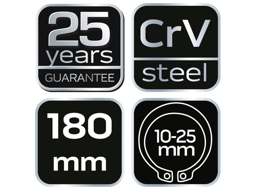 SEGERA NEO kliešte na krúžky (ref. 01-087) vonkajšie, rovné, veľkosť 180 mm. Pre krúžky 10-25 mm, priemer hrotu 1,6 mm. Vysokokvalitná chróm-vanádiová oceľ zaručuje dlhodobú odolnosť klieští. Rukoväte s protišmykovým povrchom sa dobre držia v ruke a umožňujú pevné uchopenie. Značka NEO spĺňa očakávania profesionálov.
