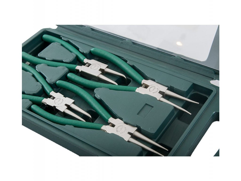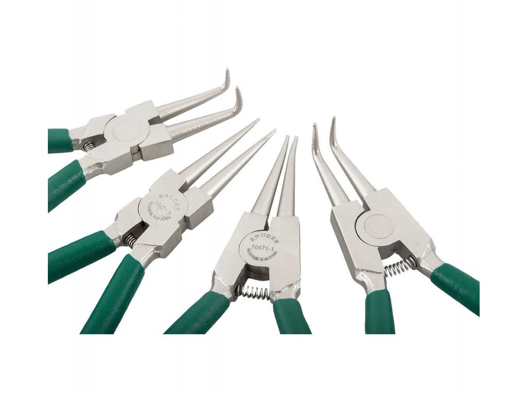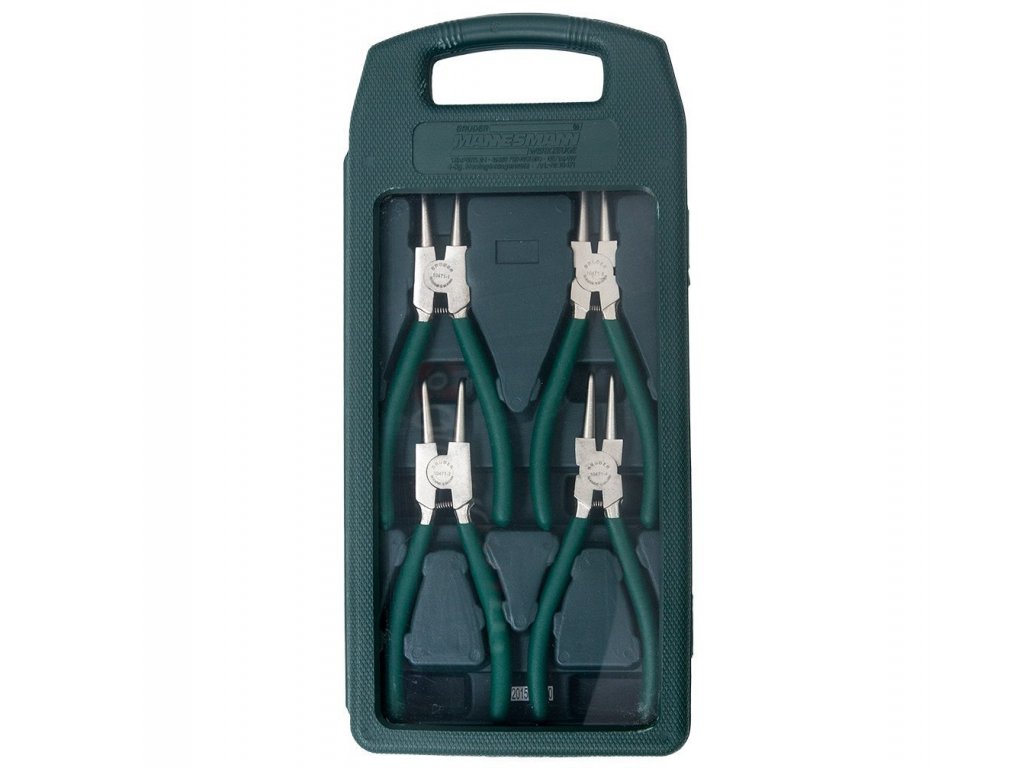 Kliešte na poistné krúžky, 4 kusy v sade. Sú vyrobené z kvalitnej vystuženej ocele potiahnutej antikoróznou vrstvou chrómu.