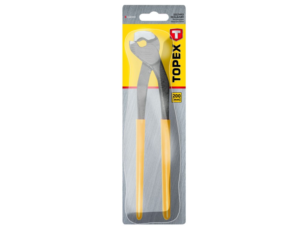 kliešte na obkladačky TOPEX (ref. 16B440) s dĺžkou 200 mm. Určené na rezanie glazovaných dlaždíc. Rukoväť potiahnutá PVC zabraňuje vykĺznutiu z ruky, čo zvyšuje pohodlie pri práci. Značka TOPEX je určená pre domácich majstrov.