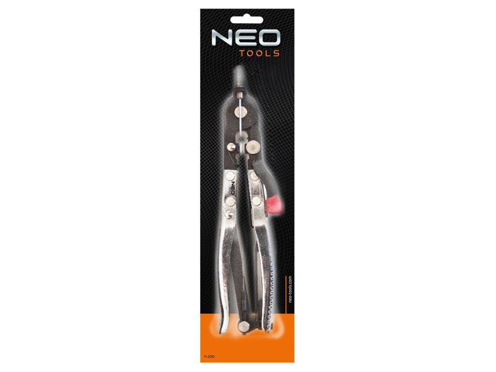 Kliešte na viazanie káblov 11-221 od spoločnosti NEO sú nástrojom na inštaláciu a demontáž viazacích pások na ťažko prístupných miestach, s dĺžkou pružnej časti 630 mm a dĺžkou rukoväte 210 mm. Vyznačuje sa rozsahom stlačenia od 0 do 45 mm a automatickým blokovacím mechanizmom na jednoduchú manipuláciu s pružinovými svorkami. Kliešte sú kompatibilné aj s najčastejšie používanými páskami v automobilovom priemysle. Spĺňa certifikáciu TÜV M+T.