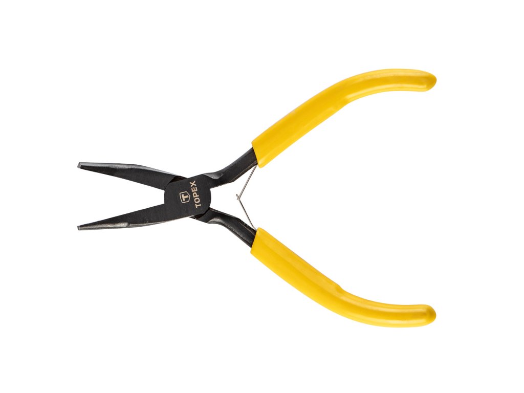 Presné podlhovasté kliešte TOPEX (ref. 32D033) vyrobené z kalenej uhlíkovej ocele. Ergonomické rukoväte pokryté protišmykovým materiálom zaisťujú pohodlie a bezpečnosť pri práci. Výrobok sa dokonale prispôsobí tvaru ruky. Značka TOPEX je určená pre domácich majstrov.