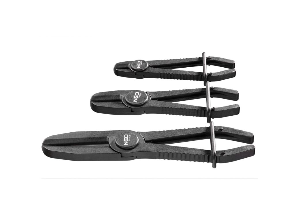 Krimpovacie kliešte, sada 3 ks. 11-224 od spoločnosti NEO je sada troch plastových nástrojov, ktoré ponúkajú rozsahy: rozsah 1: 1/4" - 3/4", rozsah 2: 1/2" - 5/4", rozsah 3: 3/4" - 9/4". Sú vyrobené z odolného nylonu, nepoškodzujú gumové hadice a nevedú elektrický prúd. Vyznačujú sa vysokou odolnosťou, nekorodujú a sú ľahké. Krimpovacie kliešte sa používajú na manipuláciu s chladiacimi hadicami, pružnými brzdovými hadicami, palivovými a vodnými hadicami. Odporúčajú sa pre servisy a garáže.