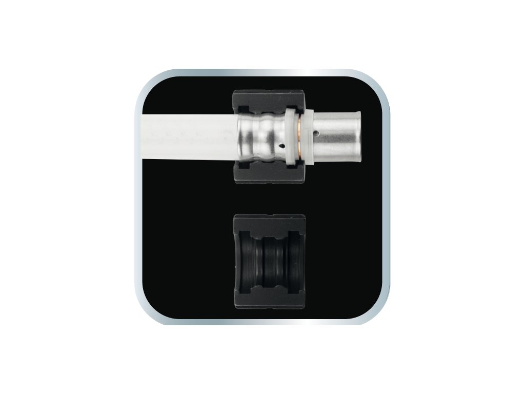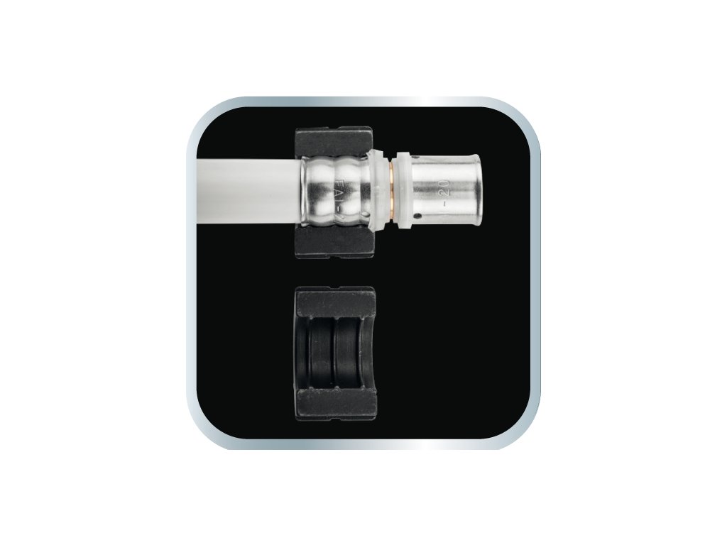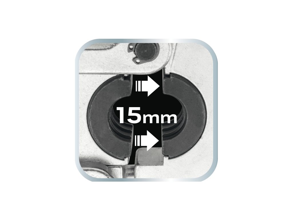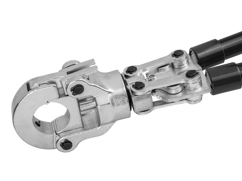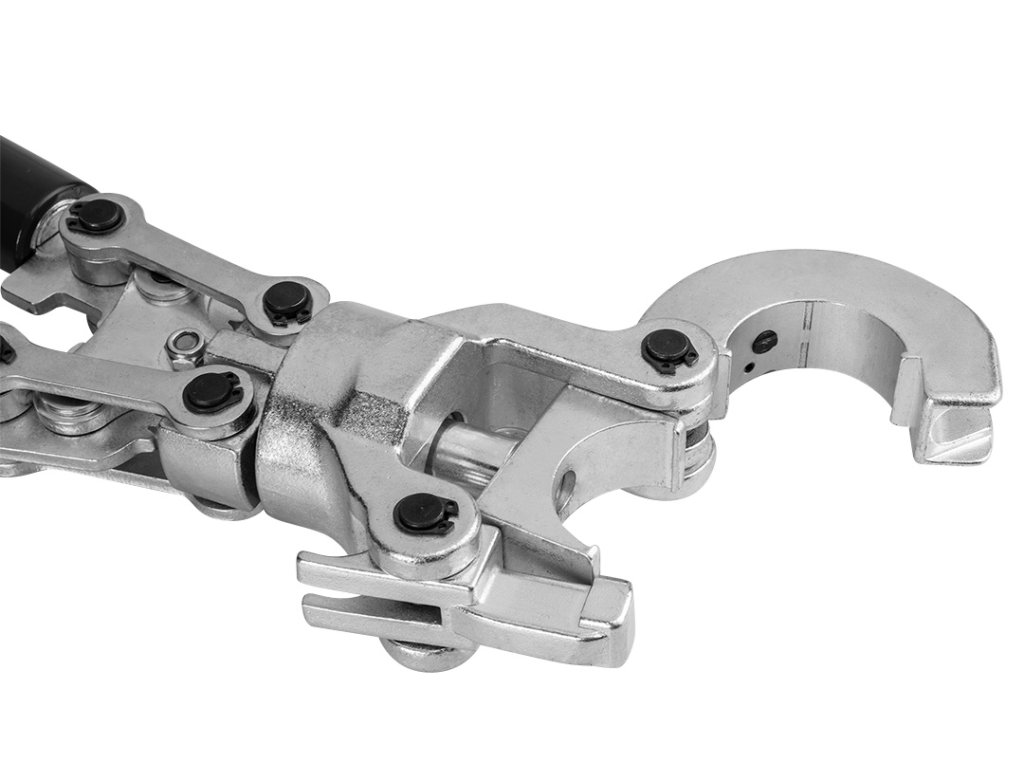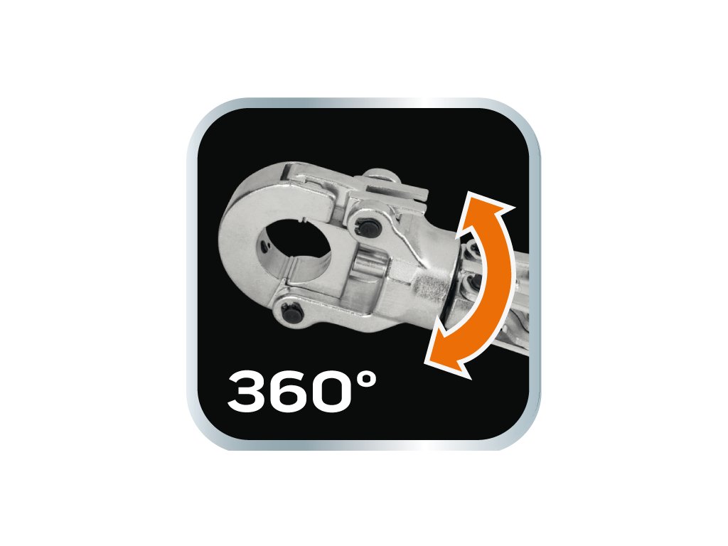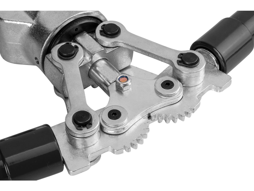 Lis na krimpovanie PEX konektorov teleskopický rozsah uchopenia 58-83 cm, 360° otočná hlava, výkon 60 kN, kufrík na prenášanie, matrice typu U: 16 mm / 20 mm / 25 mm / 32 mm, matrice typu TH: 16 mm / 20 mm / 26 mm / 32 mm, hmotnosť 4,26 kg, mäkká rukoväť, kalibrátor rúr 16 20 25 mm s odihľovačom v telese v kufri