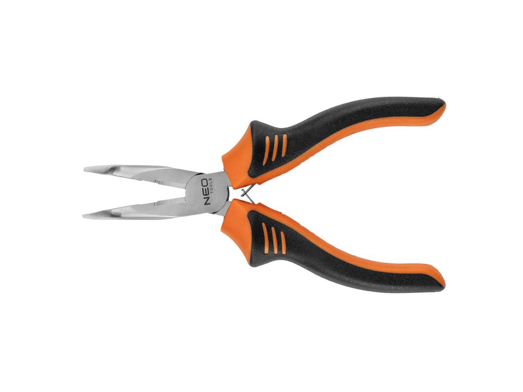 Podlhovasté ohnuté kliešte NEO (ref. 01-254) s dĺžkou 160 mm. Vyrobené z kalenej ocele, navyše s indukčne kalenými reznými plochami. Ergonomické rukoväte pokryté protišmykovým materiálom zaisťujú pohodlie a bezpečnosť pri práci. Výrobok dokonale padne do ruky. Kliešte majú rozťahovaciu pružinu, ktorá zabezpečuje, že ramená sa odrážajú, čo zvyšuje pohodlie pri práci s nástrojom. Značka NEO spĺňa očakávania profesionálov.