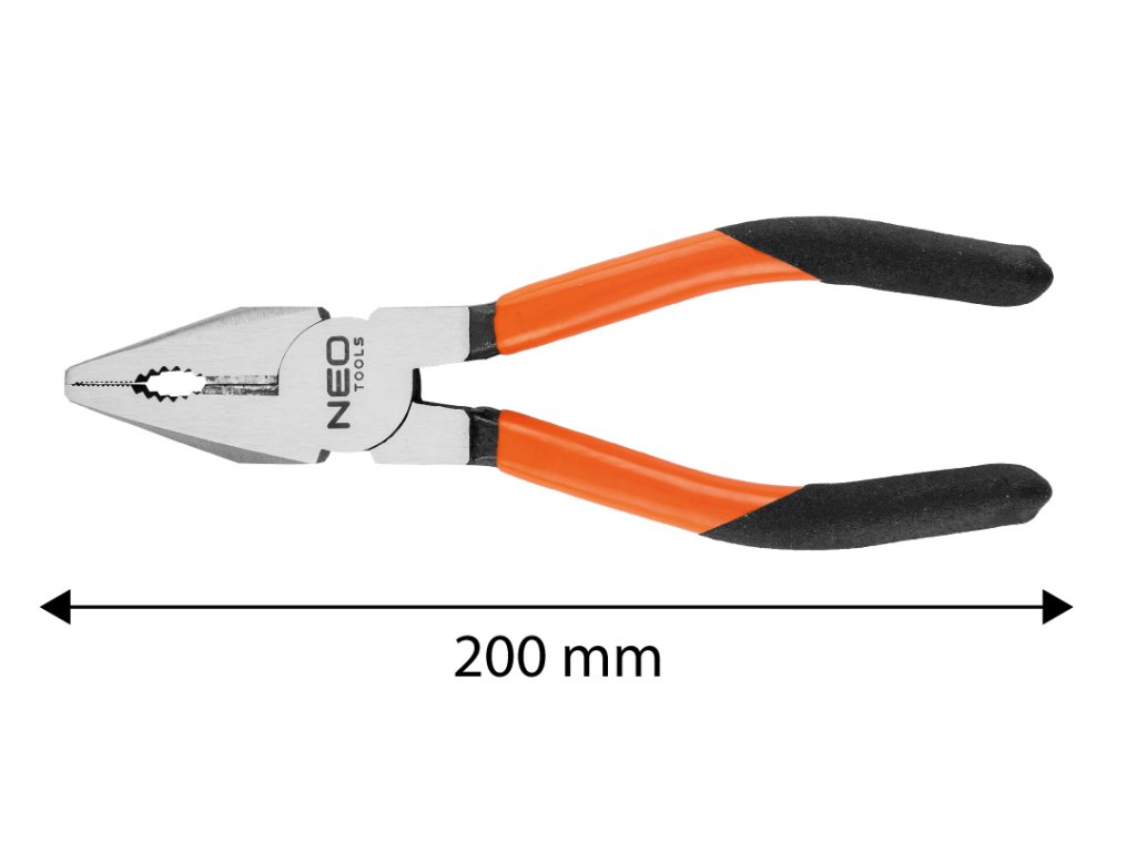 Univerzálne kliešte 200 mm 01-272 od spoločnosti NEO TOOLS sú vysokokvalitným univerzálnym náradím patriacim do série klieští. Vyrobené z odolného materiálu CS a so štíhlou rukoväťou z PVC. Rukoväť má protišmykové vlastnosti vďaka svojmu štruktúrovanému dizajnu s istým chodidlom. Univerzálne kliešte značky NEO TOOLS sú odolné voči chemikáliám - tukom, olejom a pohonným hmotám. Osvedčia sa pri mnohých rôznych profesionálnych prácach.