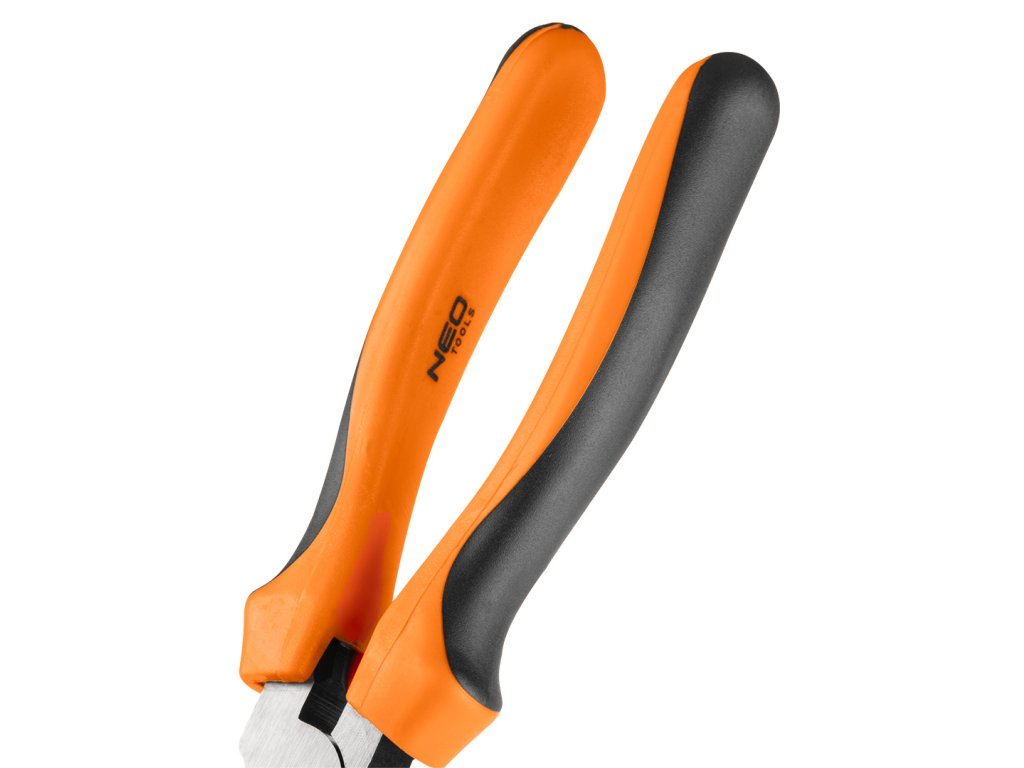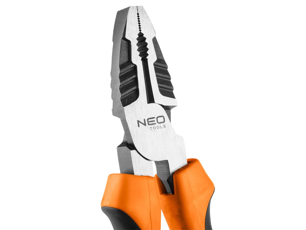 Univerzálne kliešte NEO 40% FS (ref. 01-153), dlhé 200 mm, sú určené na uchopenie rôznych predmetov. Sú vyrobené z vysoko kvalitnej CrNi ocele s antikoróznou ochranou. Dvojzložková rukoväť s gumovými prvkami zabraňuje skĺznutiu ruky pri používaní nástroja. Zúbkovaný povrch čeľustí uľahčuje odskrutkovanie matíc a skrutiek. Konštrukcia klieští umožňuje znížiť silu vyvíjanú na tlak o 40 %.