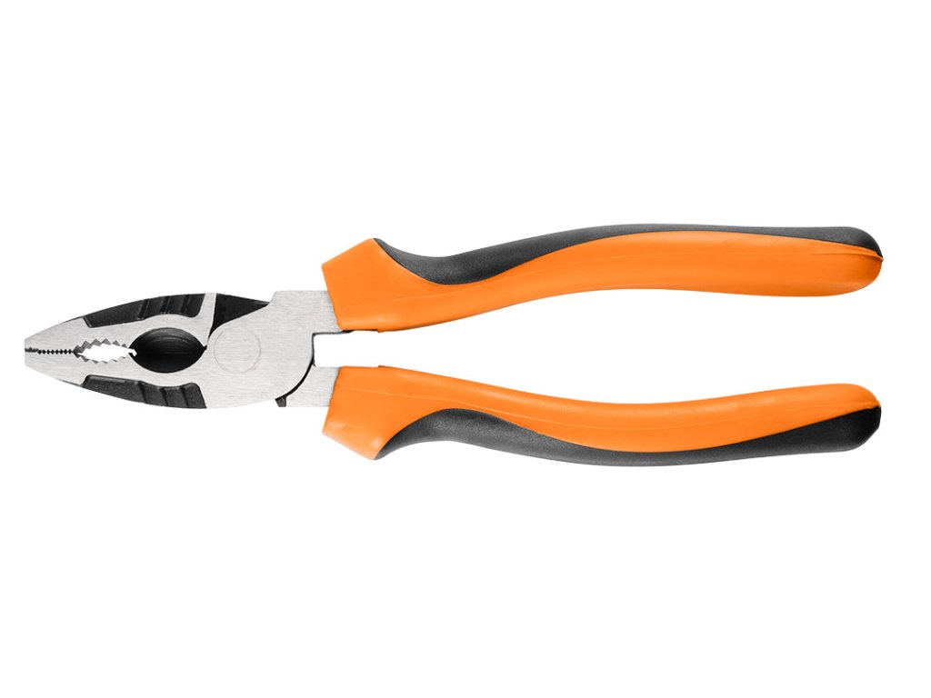 Viacúčelové kliešte Dĺžka 200 mm, 40 % úspora energie vďaka priblíženiu stopky k čeľustiam, chrómniklová oceľ proti korózii, 2-zložková rukoväť TPR+ABS, vrúbkovaná hlava, prídavný otvor v čeľustiach na uchytenie napr. klinca